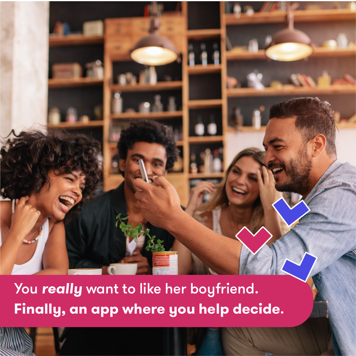 Friends hold friends accountable for their dating history. Say 👋 to bad double dates. Chat in-app and see the story unfold.